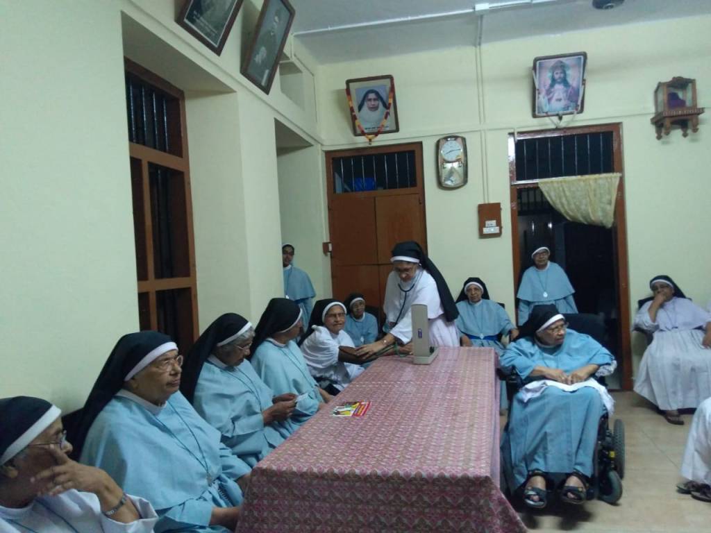 Sisters working in the mission areas take special care to give all possible help to the villagers where medical facilities are not available. Besides, health awareness classes and extension camps are conducted in remote village areas. Pain and palliative care units are attached to some of our hospitals. In certain parishes, home care is provided to bed ridden patients, by dressing their wounds, giving them bath etc. Sisters who are engaged in home care ministry prepare these patients for receiving sacraments also.